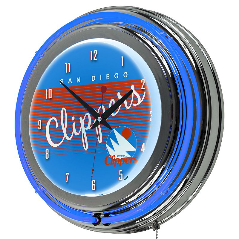 San Diego Clippers Hardwood Classics Chrome Double-Ring Neon Wall Clock, Multicolor Information