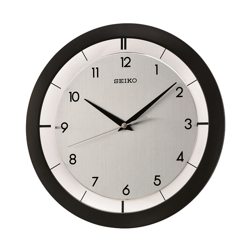 A brushed silver-tone dial gives this Seiko clock a contemporary look
