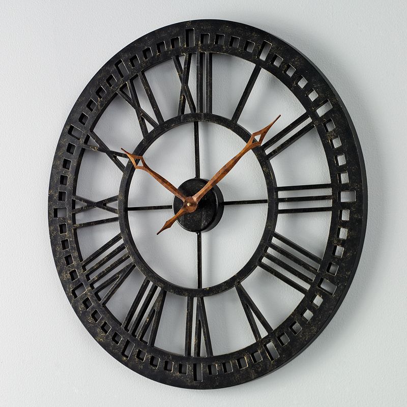 Chaney Weathered Wall Clock, Brown Details