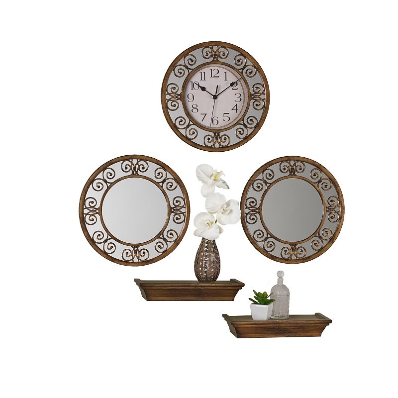 Elements 5-piece Curl Wall Clock, Mirror & Shelf Set, Multicolor