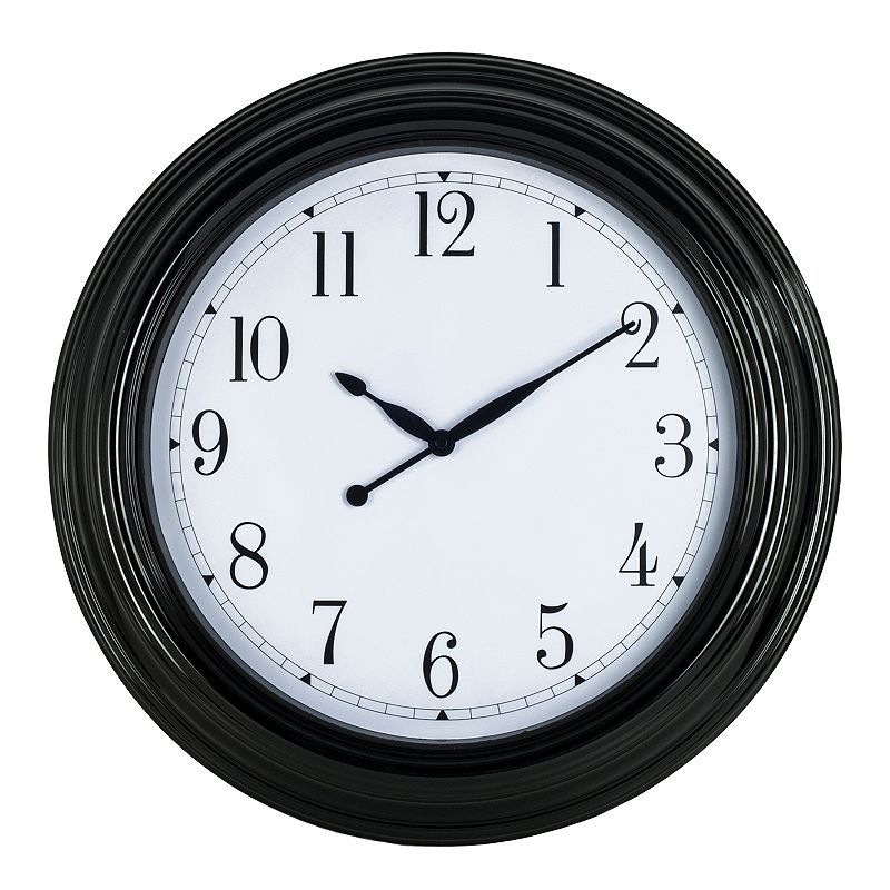 Round Wall Clock - Indoor and Outdoor, Black Information