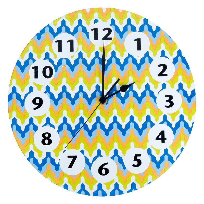 With a zigzag pattern, this boys' Trend Lab wall clock gives your little guy's nursery cute style