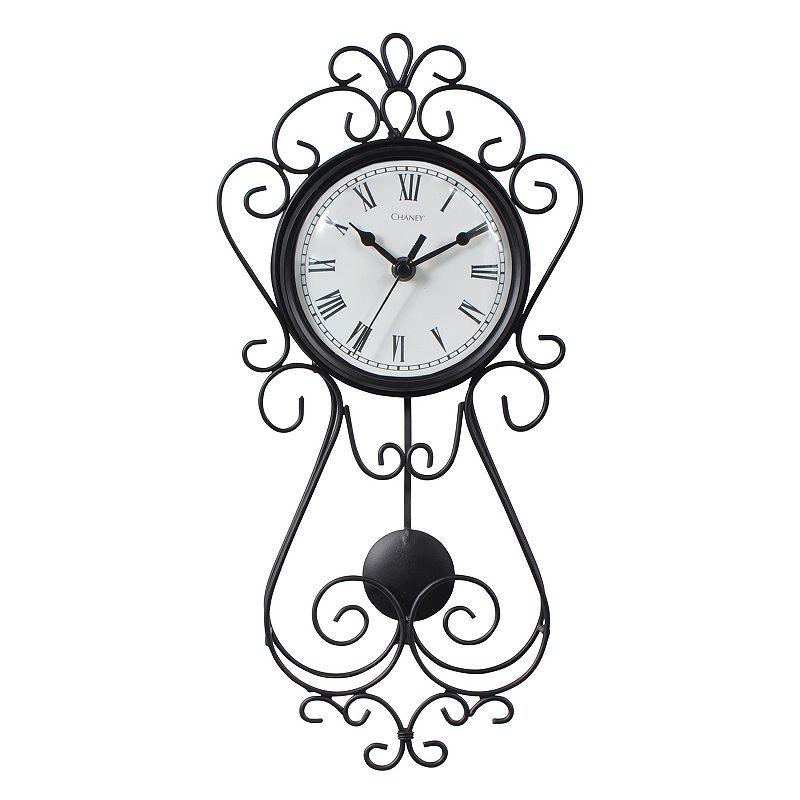 Add stunning style to your home with this ornate Chaney 16.5-inch wrought iron pendulum wall clock
