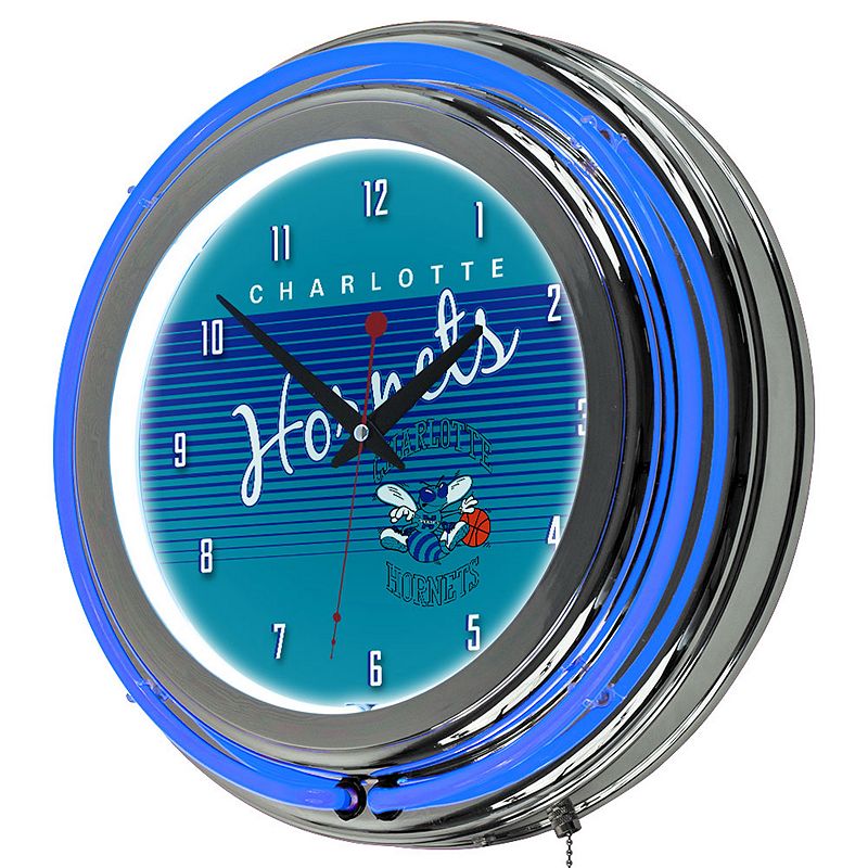 Charlotte Hornets Hardwood Classics Chrome Double-Ring Neon Wall Clock, Multicolor Description