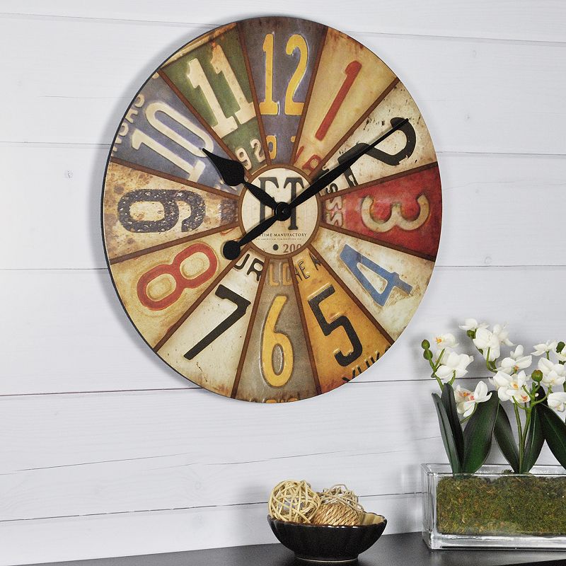 Bring color and eclectic style to your home with the license plate design of this FirsTime Plates wall clock