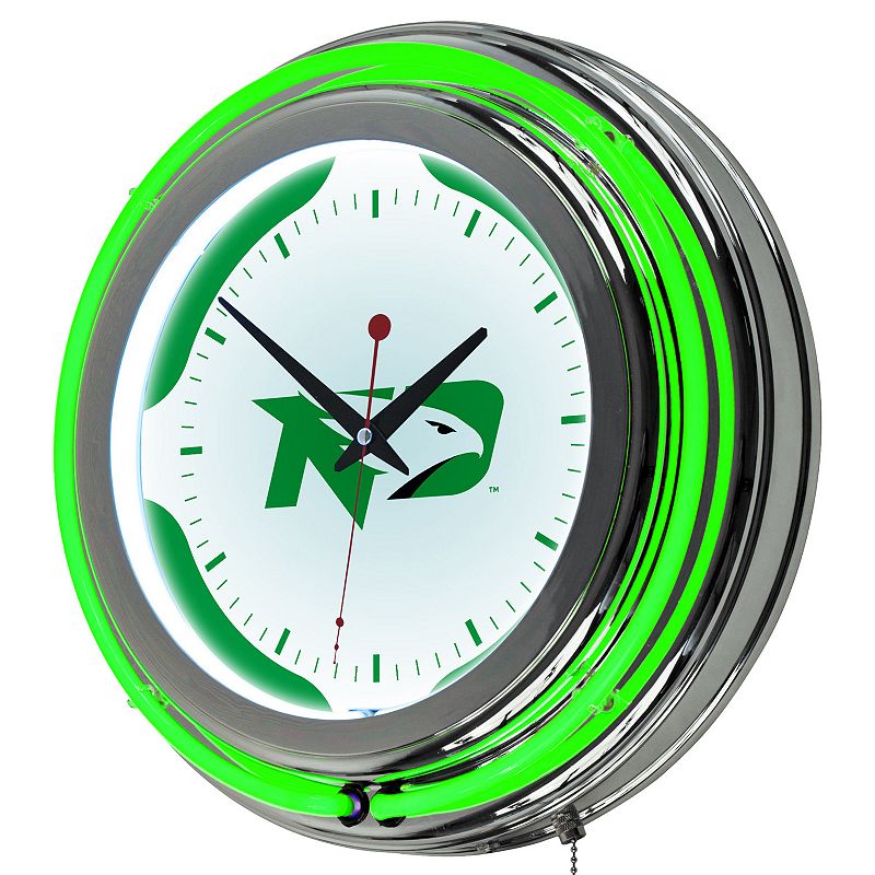 North Dakota Chrome Double-Ring Neon Wall Clock, Multicolor Information